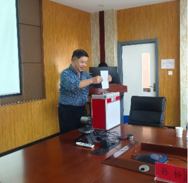 栾添宣读了民盟省委关于新一届领导班子候选人建议名单的批复,支部盟员陈渊宣读了《选举办法(草案)》并经全体盟员表决通过。会议严格按照选举程序,以无记名投票方式,选举潘相文、胡晓婧、陈渊三位同志为第九届支部委员会委员。新一届支部委员会召开第一次会议,明确班子分工,选举产生了以潘相文为主任委员、胡晓婧为副主任委员、陈渊为组织宣传委员的新一届支部领导班子。