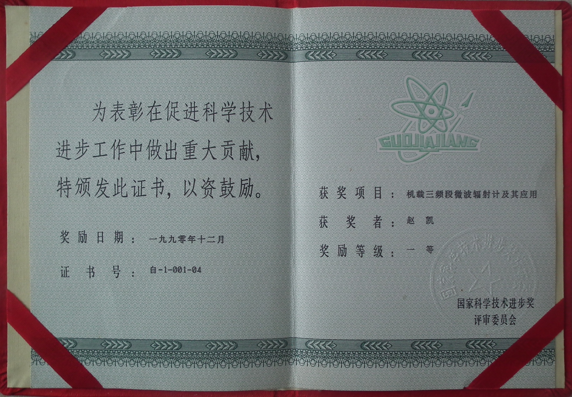 国家科技进步一等奖证书