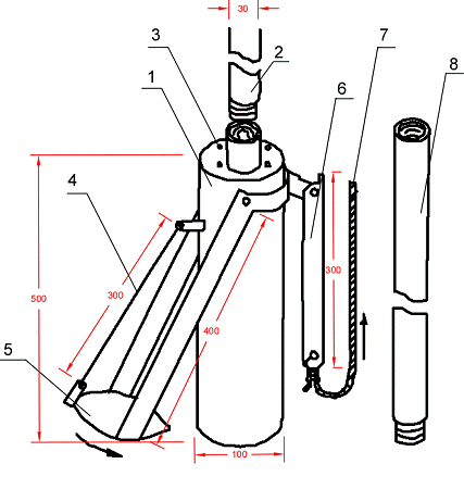 1) 采样筒(1):选用直径为100mm厚度2mm的不锈钢管制作,下端打磨锋利以有利于采样筒插入湖底淤泥。