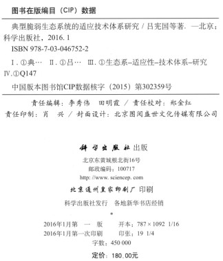 本书是全球变化研究国家重大科学研究计划“全球变化影响下我国主要陆地生态系统的脆弱性与适应性研究”课题“典型脆弱生态系统的适应技术体系研究”的成果。著者在对脆弱农田、沙地、高寒草地和湿地生态系统的长期研究和应用实践的基础上,确立了全球变化影响下我国典型脆弱生态系统的适应技术体系,提出了典型脆弱生态系统气候变化适应技术流程和技术标准。本书为国家适应气候变化战略、规划和工程提供了相关科学基础,对我国积极适应气候变化,提高应对能力具有重要意义。
