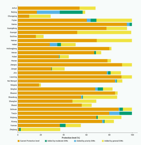 图4 小/孤湿地纳入保护后的各省保护率提升情况