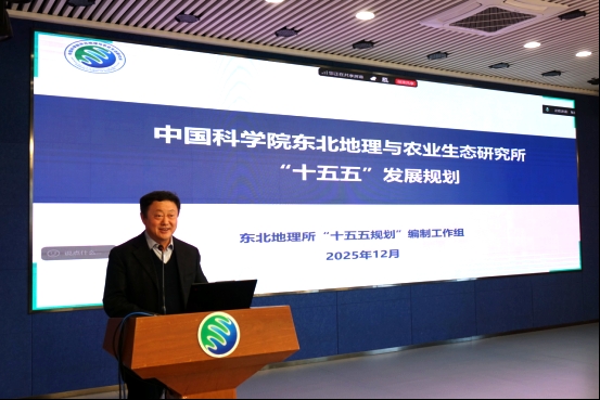 为深入贯彻国家“十五五”规划关于农业强国的战略部署,落实中国科学院“抢占科技制高点、实现高水平科技自立自强”的工作要求,2025年12月29日,中国科学院东北地理与农业生态研究所(简称东北地理所)召开“十五五”战略规划研讨会。吉林农业大学李玉院士,西北农林科技大学邵明安院士,中国科学院南京土壤研究所张佳宝院士,中国科学院地理科学与资源研究所于贵瑞院士,吉林省农业科学院王立春院士,中国农业大学李洪文院士,中国科学院南京土壤研究所张甘霖研究员,中国科学报社社长赵彦,吉林大学潘洪玉教授,东北师范大学贺红士教授、王升忠教授,东北地理所何兴元研究员、梁正伟研究员、刘晓冰研究员、张平宇研究员、李秀军研究员、宋长春研究员、冯献忠研究员等专家参会指导;中国科学院科技创新发展局重点实验室处、规划与评估处(奖励办)处长潘韬应邀出席会议;东北地理所所长姜明,党委书记、副所长王宗明,副所长李向楠、李禄军、祝惠出席会议,研究所各科研单元及管理支撑部门人员参加会议,开幕式由李禄军主持。