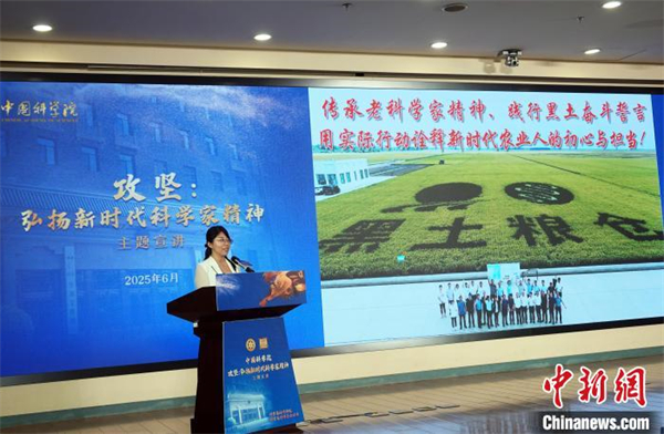 6月19日下午,中国科学院“攻坚:弘扬新时代科学家精神”主题宣讲在北京举行,图为梁爱珍研究员宣讲“黑土精神”。中新网记者 孙自法 摄