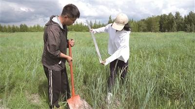 科研人员在盐碱生境中筛选优质野生羊草种质资源。
