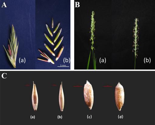 图2 羊草小穗结构及颖果的形态特征