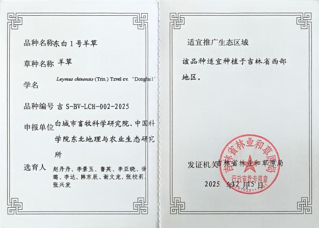 羊草(Leymus chinensis)作为我国北方草地生态修复与畜牧业发展的核心种质,其资源评价与选育利用一直备受学术界关注。近日,中国科学院东北地理与农业生态研究所(以下简称“东北地理所”)在羊草生物学特性研究及优良品种选育方面取得系列进展:系统性研究成果在国际生态学期刊《Journal of Ecology》发表;同时,团队选育的“东地7号”“东白1号”等羊草新品种通过审定,实现了羊草从基础理论研究到生产应用实践的有效衔接。