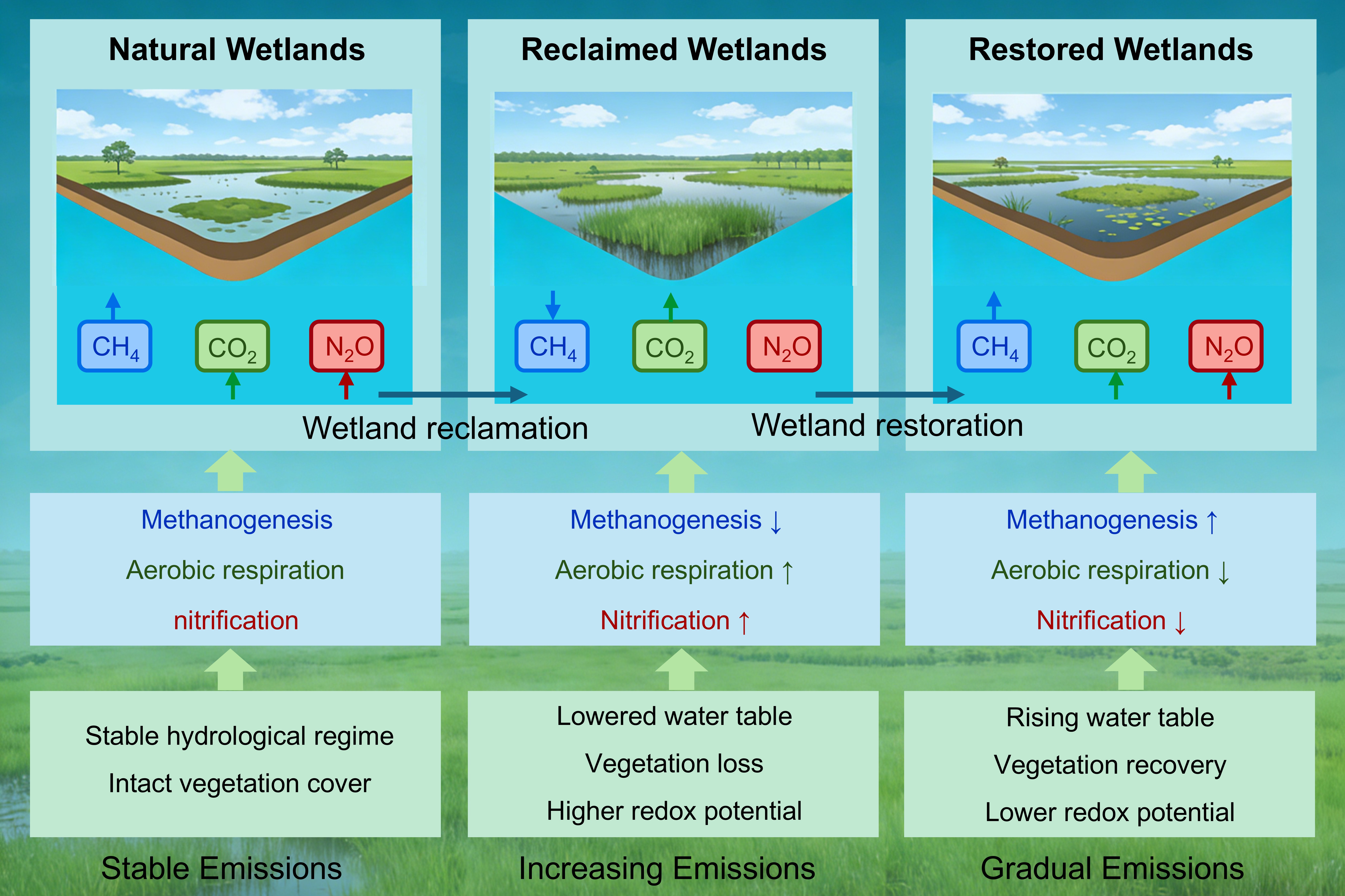 湿地是陆地生态系统中重要的碳库,在全球碳循环和气候变化调节中发挥着关键作用,同时也是甲烷(CH4)、氧化亚氮(N2O)和二氧化碳(CO2)等温室气体的重要来源。湿地景观变化会显著改变植被状况和水文条件等,进而影响温室气体排放过程。然而,受限于观测数据分散、研究区环境背景差异大、以及研究方法间的不一致等问题,当前对于全球尺度湿地景观变化如何影响温室气体排放仍缺乏系统的定量认知,影响了全球变化背景下的湿地适应性管理与调控等。