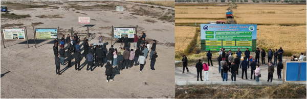 2025年10月10日至-11日吉林大安农田生态系统国家野外科学观测研究站在大安与镇赉万亩核心示范区成功召开盐碱地三良一体化“大安模式”专家现场测产观摩会。