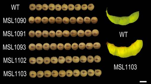 WT:为野生型大豆MSL1090、MSL1091、MSL1092、MSL1102和MSL1103为过量表达GmCYP78A72基因的不同株系 该研究成果10月19日在Plant Molecular Biology杂志上在线发表。我所大豆分子设计育种重点实验室的合作培养博士生赵宝添为论文第一作者、冯献忠和杨素欣研究员为论文责任作者。本研究得到中国科学院创新团队国际合作伙伴计划“大豆分子设计育种”项目和国家自然基金等项目的资助。 论文信息: Baotian Zhao, Aihua Dai, Haichao Wei, Suxin Yang, Baoshan Wang, Ning Jiang,Xianzhong Feng。Arabidopsis KLUhomologueGmCYP78A72regulates seed size in soybean,Plant Molecular Biology. 链接:http://link.springer.com/article/10.1007%2Fs11103-015-0392-0 |