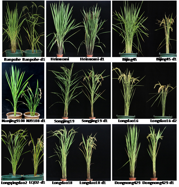 我所水稻分子育种学科组利用CRISPR/Cas9基因编辑技术对7个黑龙江省主栽优质品种、3个南方优质品种抽穗期基因Hd2、Hd4、Hd5进行了基因编辑,成功培育出早熟稳定水稻品系(图1)。这一研究不仅可以促进黑龙江省主栽品种北移、扩大种植面积,也有助于引进南方优质水稻资源。与传统的育种方式相比,这一技术具有高效、稳定、快速等优势,将会更广泛应用于育种中。