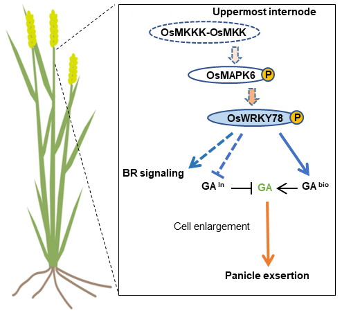 图1. OsWRKY78调控水稻穗伸出模式图