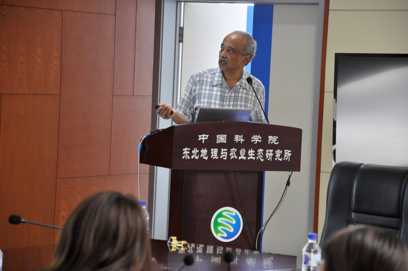 2019年6月20日,应大豆分子设计育种重点实验室邀请,中国科学院国际人才计划“国际访问学者”美国爱荷华州立大学Madan Kumar Bhattacharyya教授来东北地理所进行学术交流,并做了题为“Arabidopsis Nonhost Resistance Genes for Enhancing Disease Resistance in Soybean”的学术报告,研究所相关科研人员和研究生30余人参加了报告会。