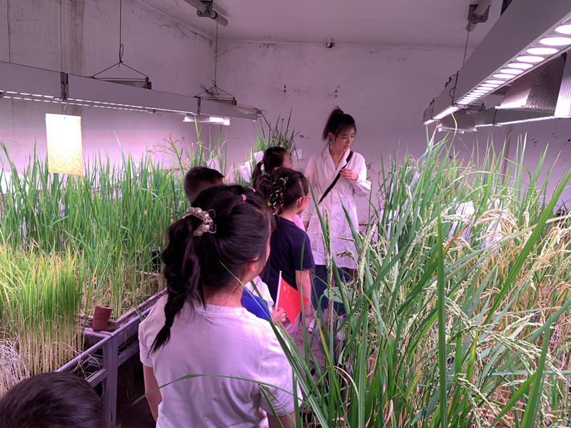 在温室、盆栽试验场,田晓杰博士给同学们详细讲解了水稻植株的构成以及育秧、插秧、收获全过程,并带领同学们体验了插秧过程。同学们不但了解了日常食用的米饭的由来,也感受到了“汗滴禾下土、粒粒皆辛苦”的艰辛,“节约粮食、拒绝浪费”从小做起。