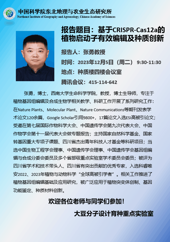 基于CRISPR-Cas12a的植物启动子有效编辑及种质创新-张勇 教授