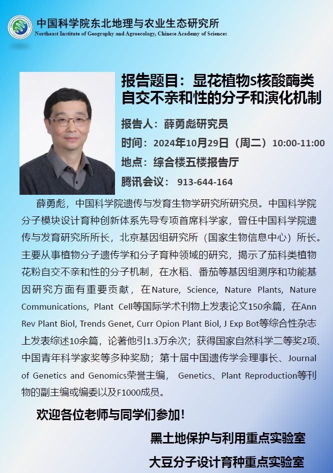 显花植物s核酸酶类自交不亲和性的分子和演化机制-薛勇彪 研究员