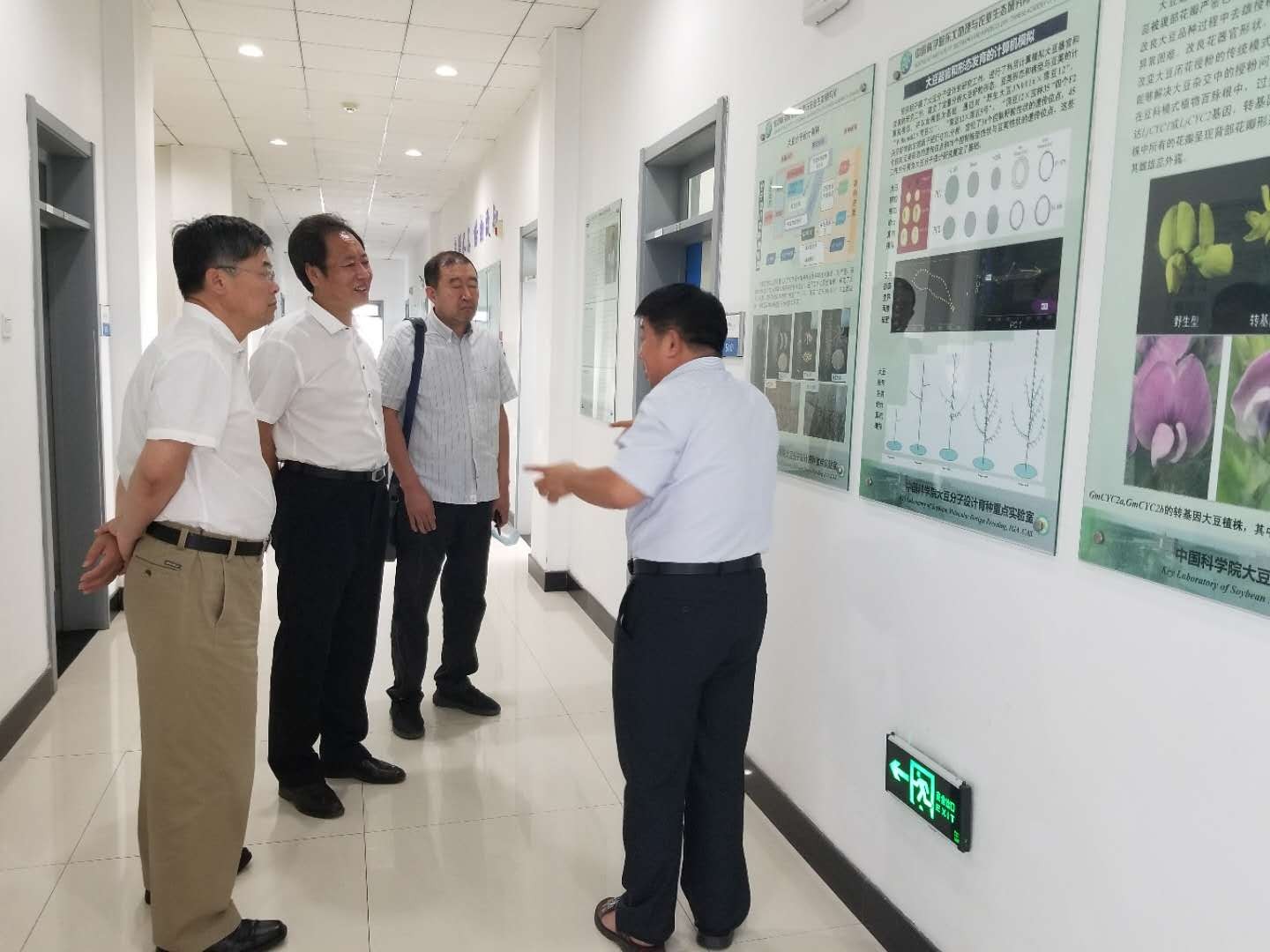 随后,崔军先后到大豆分子育种学科组、盐渍土生态与改良学科组进行现场调研。冯献忠研究员汇报了国家重点研发计划“主要经济作物分子设计育种”项目情况。项目培育的大豆新品种使我国大豆育种进入国际水平;东生和合农系列大豆品种,连续四年累计在我国大豆主产区种植面积最大,成为我国大豆“振兴计划”的主栽品种,为解决大豆卡脖子问题提供了优良的品种。崔军听后给予充分肯定同时指出,正在建设的“大豆人工智能育种平台”应加快进度,为吉林农业发展提供变革性技术。