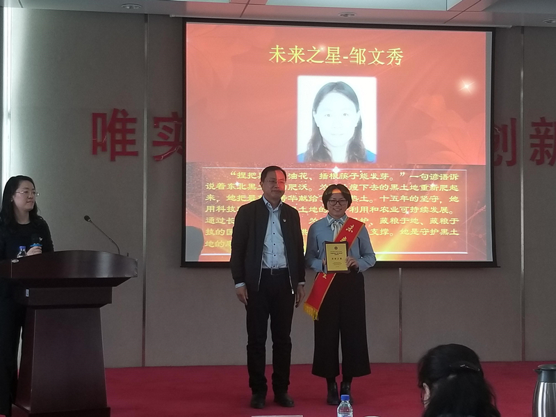 未来之星——邹文秀。“捏把黑土冒油花、插根筷子能发芽。”一句谚语诉说着东北黑土地的肥沃。为了让瘦下去的黑土地重新肥起来,她把最美的芳华献给了这片热土。十五年的坚守,她用科技实现了东北黑土地的保护利用和农业可持续发展。通过长期的定位实验,为黑土地保护、藏粮于地、藏粮于技的国家战略实施提供了理论和技术支撑。