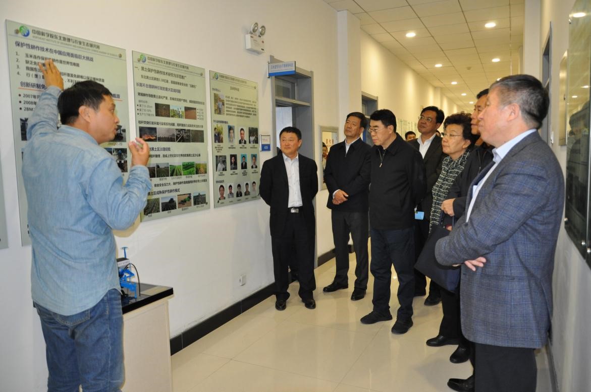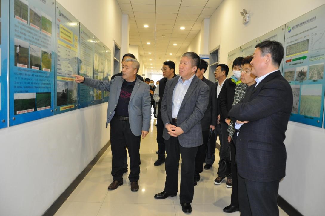 曹健林一行参观了中科院黑土区农业生态重点实验室和大豆分子设计育种重点实验室,听取了盐渍土生态与改良学科组梁正伟研究员、玉米育种学科组关义新研究员和大豆功能基因组学学科组冯献忠研究员对相关工作的汇报。