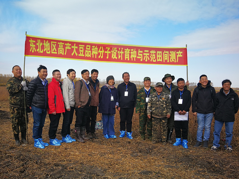 2020年10月13日,中科院东北地理所邀请专家对承担的中国科学院重点部署项目子课题“东北地区高产大豆品种分子设计育种与示范”—初级分子模块设计型品种“东生77”百亩示范田进行田间测产验收,现场会在黑龙江飞龙种业有限公司良种繁育基地友谊农场第一分场进行。