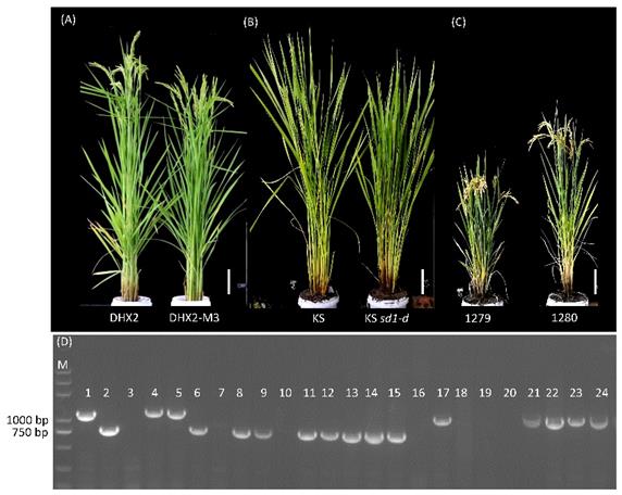 图1 新创制的矮杆、半矮杆材料的表型和sd1-d等位基因的分子鉴定