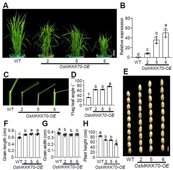 近日,中科院东北地理与农业生态研究所卜庆云研究团队在植物学期刊JIPB上在线发表了题为“OsMKKK70 regulates grain size and leaf angle in rice through the OsMKK4-OsMAPK6-OsWRKY53 signaling pathway” 的研究论文。该研究发现一个新的水稻MKKK类激酶OsMKKK70通过OsMKK4-OsMAPK6-OsWRKY53级联模块参与调控水稻粒型和叶倾角。