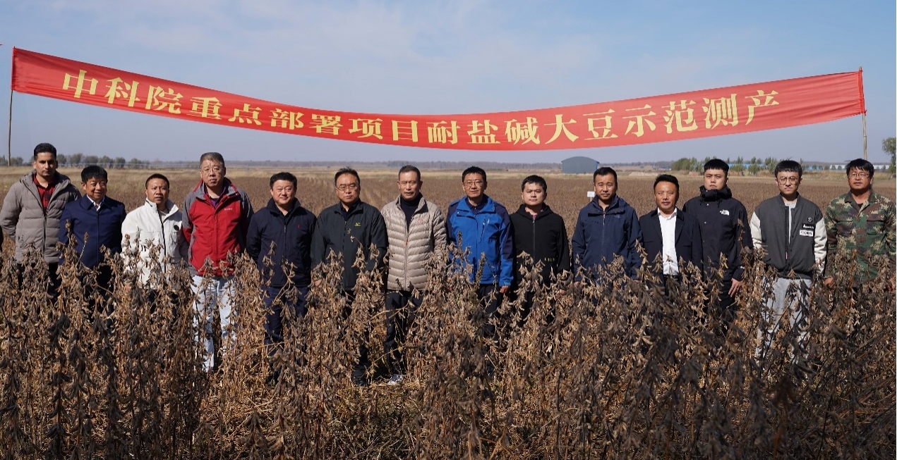 2021年育成的耐盐碱大豆新品种“东生118”在近年来表现出良好的盐碱抗性。2022年10月7日,在松原市前郭县查干花镇八家子村经测产专家(吉林农业大学王丕武教授、吉林省农业科学院郝东云研究员、吉林省农业科学院张伟研究员和长春师范大学魏健教授)现场对225亩盐碱地大豆进行了实打实收测产,“东生118”在中重度盐碱地示范亩产150.4公斤。专家组一致认为测产田块展示的大豆品种具有较高的抗盐碱性,后续配合固定的栽培管理措施及增加公顷保苗株数将会有更大的增产空间,可以实现在大安、松原等苏打盐碱地区推广应用。