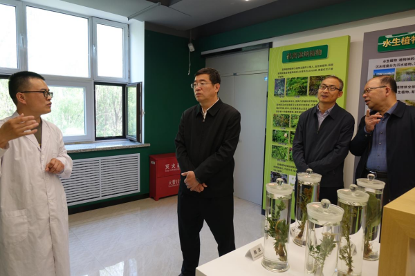 马延峰首先来到农业楼盐碱地农业研究中心,杨帆高级工程师系统介绍了苏打盐碱地治理关键技术、土壤改良剂研发与利用、耐盐碱水稻、大豆、羊草等作物品种选育及盐碱地生态修复工程实施等工作情况和科研进展。