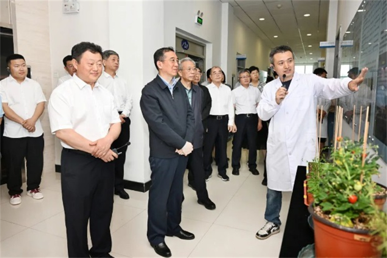 在农业楼,调研组一行听取了黑土地保护性耕作、盐碱地综合治理、耐盐碱种质资源创制等工作情况。在种质资源楼,听取了分子设计育种工作进展,现场查看了大豆基因突变体库、高通量作物表型组分析系统及“东生”系列大豆新品种选育与转化工作。在研究所展馆,听取了研究所历史沿革、学科布局、承担任务、科技平台、人才队伍、党建工作及发展规划等情况的介绍。