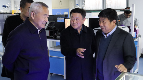 随后,调研组前往东北亚种质资源研究中心,考察了大豆分子设计育种体系、耐盐碱系列大豆新品种、高通量作物表型组平台、大豆基因编辑技术以及大豆固相育种芯片研发等方面的工作进展。大豆分子设计育种重点实验室主任冯献忠等详细介绍了中心在种质资源创制、智能育种平台建设及新品种推广应用等方面取得的成果。