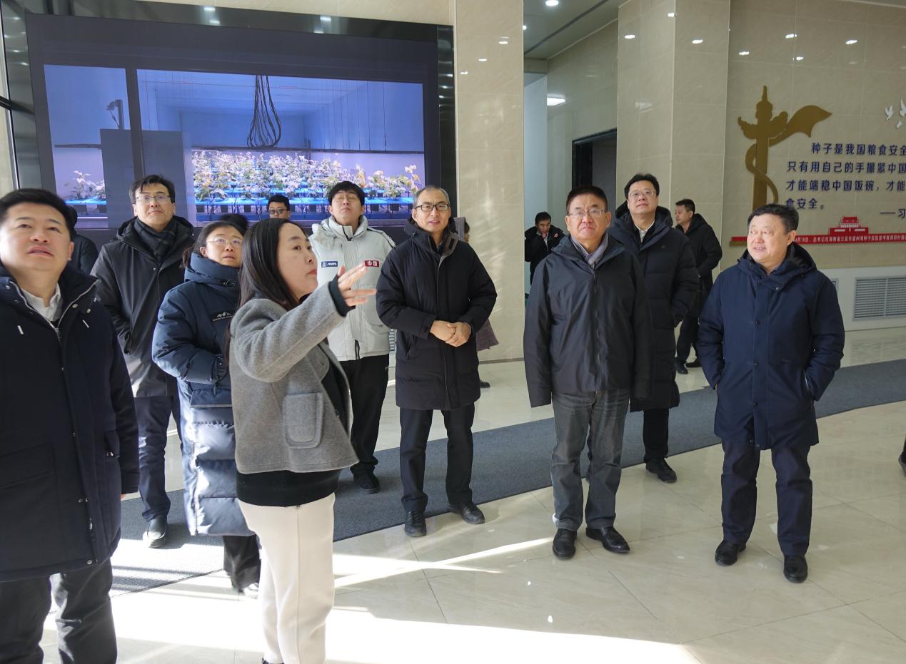 在东北亚种质资源研究中心,于慧副研究员详细汇报了大豆分子设计育种体系、高通量作物表型组平台等工作进展情况,冷建田高级工程师介绍了“东生”系列大豆新品种的研发成果及推广应用情况,并汇报了东生大豆在山东省种植成效。
