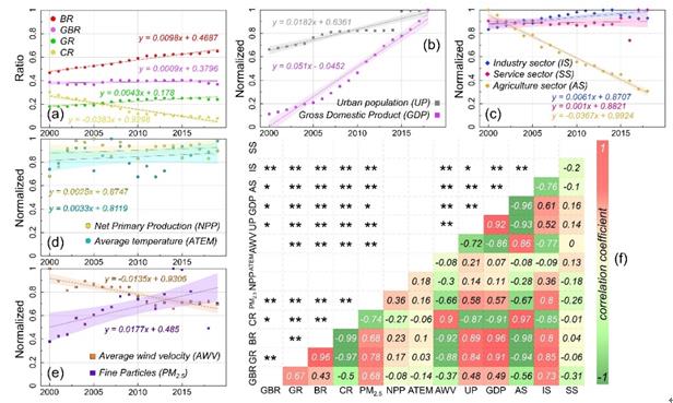 图4. 土地动态与社会经济生态指标的相关关系