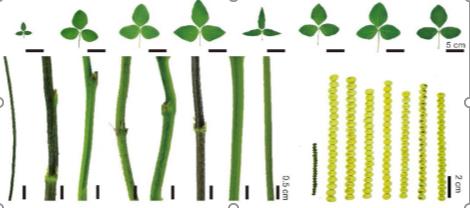 基于8个高质量的大豆基因组,研究团队鉴定到了186-427万个SNP,44-92万个InDel,11750-25330个大的InDel,706–3006个易位事件,200–413个倒位事件。在野生大豆中鉴定到60个栽培大豆中缺失或变短的基因,以及野生大豆种质缺失或变短但在栽培中存在的185个基因。